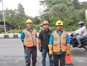 Potret Petugas Pelayanan Teknik ULP Pontianak, M. Nasir Almuttahar (kiri), Jawawi (kanan) bersama Team Leader K3L, Ahmad Chairul (rompi hitam) yang selalu siap siaga dalam melaksanakan pemeliharaan dan perbaikan kelistrikan untuk memastikan pasokan listrik tetap aman dan andal bagi masyarakat. (FOTO/DOK/PLN)