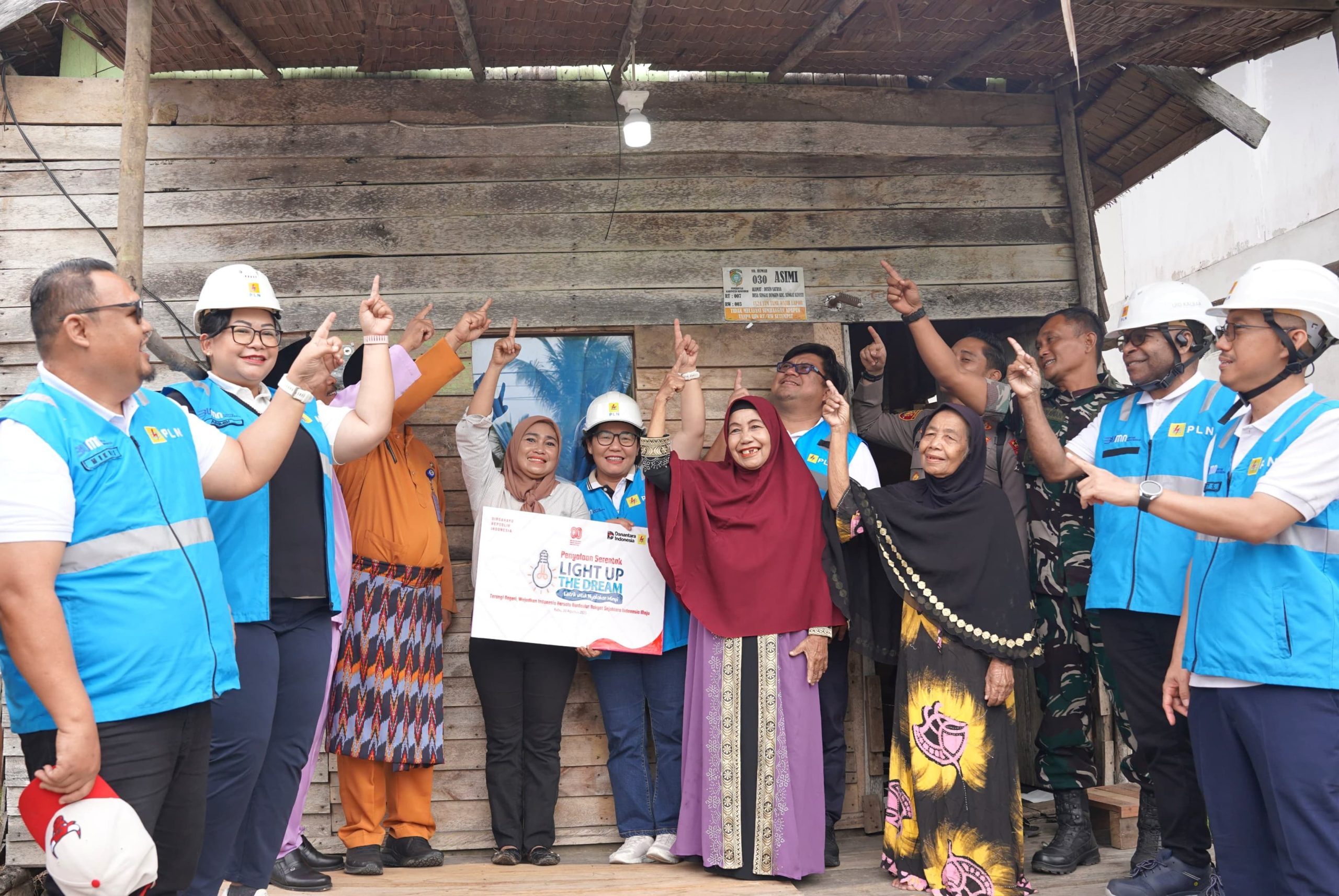 Manager ULP Sintang, Alex Halmar (kedua dari kanan), berfoto bersama Ibu Sarinah (79), salah satu penerima bantuan Light Up The Dream (LUTD). Momen penuh haru terjadi saat listrik dari PLN…